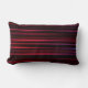 This lumbar pillow features abstract red and blue gradient stripes on black background.