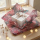 The artwork captures the intricate details of fluid painting, showcasing large "cells" and lacing in deep reds, dusty rose, and vibrant teal. The background mimics the texture of crushed stone or metallic foil, overlaid with soft, sparkling bokeh light accents in warm gold tones to create a dreamy, festive atmosphere.