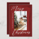 Abstract Red Watercolor Photo Merry Christmas Card