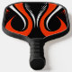 Abstract modern Red White and Black pickleball paddle design with curved lines dots and swirl patterns
