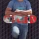 Abstract, unique red white, and black lines and brush strokes distressed design with your name ina cool font skateboard