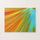 Abstract red yellow orange green stripes on blue jigsaw puzzle