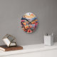 The clock did not take as long to arrive as I thought it might and was extremely well packaged. I didn't do the measurements so I didn't realize it is a little smaller than the average clock but that does not matter (just make sure you check if that's important to you).It is really nifty! It seems very solid and well made not flimsy at all. It has been going well and has kept good time in its few weeks on my wall. Nice product. Gets noticed too! Nicer in real life than the picture but true to the picture