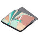 This modern abstract laptop sleeve is eye-catching and makes a statement with its retro look of peach, teal, aqua, and clay rust swirls. Add a name and initial to personalise it. Created by Simply Farmhouse Press.