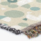 A quality printed throw has its advantages. This is a much finer weave throw than its loopier cousins, and though lighter, it is worth the investment for custom room accessorizing. The back is much prettier than the typical brown, and the fringe on the long sides very vivid, the selvage nicely done. Before photographing, I washed the throw in cold water, delicate, with a thicker woven throw the same size. On tumble dry low, this throw was dry in half the time as the other. This is a very practical quality if you use throws for furniture covers or to wrap up in frequently. The sleekness of the fabric makes it a great layer for accenting or protecting without the feeling of sitting on too much stuff. Perfect for napping or when you feel a light chill coming on. The color printing is beautiful and on this fabric, matched the design and color of my Photoshop image. This is an advantage for blending room fabrics and colors. The fringe on the short sides prints the colors from the design image and therefore varies from the side fringe. I streaked a white fractal line through the plaid pattern to give the illusion of weaving. This printed as crisp as an illusory thread, and put some white in the short side fringe, showing another advantage of print vs loomed- for artistic purposes, line lines, detail, and color integrity can be planned and preserved. My loomed throws have color limitations and more of a needlepoint texture. Print throws reproduce an exact image. The throw felt a little stiff straight out of the package, but this went away in the first delicate wash. Of course I searched the wash water for ink or bleeding and there was none.