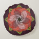 Abstract Ribbon Rose in Coral and Moss on Fig Round Cushion