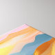 A vibrant abstract painting featuring rolling hills in soft pastel colours, blending into a dreamy sunset. The artwork showcases textured brushstrokes with golden accents, creating a warm and inviting atmosphere.