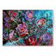 Lots of semi abstract roses in pink, red, turquoise, olive and blue (print is from my mixed media artwork).
