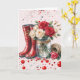 A lovely abstract rustic vintage style card featuring a pair of red rain boots beside a mason jar of roses tied with jute, dot speckles in various sizes accent the background. Customise this card for any occasion that suits you.