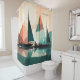 Transform your bathroom into a nautical paradise with this stunning shower curtain featuring a fleet of colourful sailboats against a serene sunset. The elegant design and calming colours create a spa-like atmosphere. Perfect for adding a touch of coastal charm to your home.