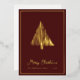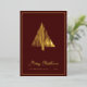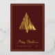 Abstract Scandi Christmas Tree Burgundy and Gold Foil Holiday Card... The front of our luxe holiday card features a real gold foil abstract line drawing Christmas tree in the Scandinavian style above script text "Merry Christmas" and your name and year in classic sans serif typography... on an elegant burgundy red background. The back of the card is black and white, displaying the same tree in black above your personal holiday message and signatures in black ink on a white background. All text on front and back of the card can be easily revised on the personalisation template.