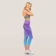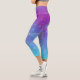 Modern stylish Capri leggings design featuring scattered stars in different sizes on a abstract purple to turquoise gradient background.