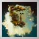 Abstract SciFi Cat Raven Witchy AI Art Matte Value Poster