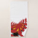 An abstract art design of a mythical creature reminiscent of a sea anemone, in red, yellow, white and gold.