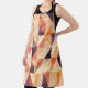 Abstract seamless pattern with triangular mosaic elements. Watercolor illustration in natural, earthy colours: ochre, blush, terracotta, orange, violet.