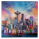 Abstract Seattle Skyline Art Modern Cityscape Tile