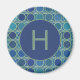 Abstract Shades of Blue Circle Pattern Monogram Magnet
