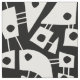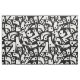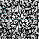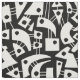 An original hand drawn abstract pattern made up of an arrangement of bold shapes with spots, interconnected with thinner lines, creating a quirky playful design.