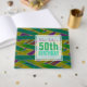 Beautiful abstract background (aqua, blue, purple and green colours) with a half-transparent white square tag (tiny transparent border) for name, date and birthday on guest book (hard cover). All is customisable for this 50th birthday guest book. Available in spiral notebook).