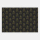 This pretty, abstract drawing of a Christmas tree in sparkling gold simulated foil is an elegant expression of the holidays on these beautiful wrapping paper sheets. The simple design is a spiralling shiny gold curlicue on a dramatic black background, in a pine tree shape, with tiny stars sprinkled on its "boughs." Then the tree design is repeated into a dazzling pattern.
