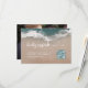 Romantic coastal themed wedding QR code rsvp card features beautiful moody abstract watercolor sparkling ocean wave and beach background, toped with stylish script and elegant font event details, modern and simple, great for sand beach wedding, tropical destination wedding, coastal ocean themed wedding.