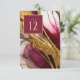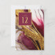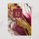 This elegant ensemble in stunning wine-red tones sets a refined tone for your wedding, tantalising your guests with a glimpse of the opulent celebration that awaits. Enhanced further with the lavish sparkle of gold glitter accents, the wedding table number card shown here provides a template to easily add a table number, your initials and wedding date. Search ID1018 to see other pieces in this coordinated wedding set.