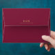 This elegant ensemble in stunning wine-red tones sets a refined tone for your wedding, tantalising your guests with a glimpse of the opulent celebration that awaits. Enhanced further with the lavish sparkle of gold glitter accents, the coordinating envelope shown here with an optional wine red exterior provides a template to easily add your own initials and return address. Search ID1018 to see other pieces in this coordinated wedding set.