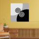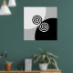 Abstract art with spiral circle geometric shapes on black grey and white. Spirals symbolise the sacred cosmic energy present in everything. The double spiral represents balance and creativity. And it is at the core of life as DNA composed of double helix!