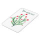 Pretty floral personalised magnet with an ink and watercolor drawing of an abstract spring plant in pink and green over customisable white background and customisable text.