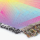 A quality printed throw has its advantages. This is a much finer weave throw than its loopier cousins, and though lighter, it is worth the investment for custom room accessorizing. The back is much prettier than the typical brown, and the fringe on the long sides very vivid, the selvage nicely done. Before photographing, I washed the throw in cold water, delicate, with a thicker woven throw the same size. On tumble dry low, this throw was dry in half the time as the other. This is a very practical quality if you use throws for furniture covers or to wrap up in frequently. The sleekness of the fabric makes it a great layer for accenting or protecting without the feeling of sitting on too much stuff. Perfect for napping or when you feel a light chill coming on. The color printing is beautiful and on this fabric, matched the design and color of my Photoshop image. This is an advantage for blending room fabrics and colors. The fringe on the short sides prints the colors from the design image and therefore varies from the side fringe. I streaked a white fractal line through the plaid pattern to give the illusion of weaving. This printed as crisp as an illusory thread, and put some white in the short side fringe, showing another advantage of print vs loomed- for artistic purposes, line lines, detail, and color integrity can be planned and preserved. My loomed throws have color limitations and more of a needlepoint texture. Print throws reproduce an exact image. The throw felt a little stiff straight out of the package, but this went away in the first delicate wash. Of course I searched the wash water for ink or bleeding and there was none.