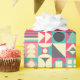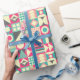 A repeating pattern made up of 25 squares each with a different abstract geometric design in a harmonious palette of colours.