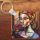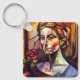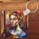 Abstract Stained Glass Woman Portrait with Rose Key Ring