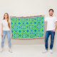 Abstract Star Geometric - Lime Green and Blue Throw Blanket