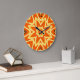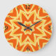 Clock in a geometric abstract star pattern In candle flame colours of soft orange and mustard gold, accented with white