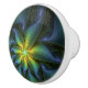 Abstract Star, Shiny Blue Green Golden Fractal Art Ceramic Knob