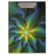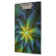 Abstract Star, Shiny Blue Green Golden Fractal Art Clipboard
