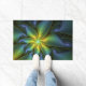 Abstract Star, Shiny Blue Green Golden Fractal Art Doormat