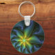Abstract Star, Shiny Blue Green Golden Fractal Art Key Ring