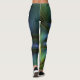 Abstract Star, Shiny Blue Green Golden Fractal Art Leggings