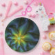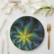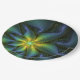 Abstract Star, Shiny Blue Green Golden Fractal Art Paper Plate
