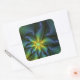 Abstract Star, Shiny Blue Green Golden Fractal Art Square Sticker