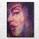 Feel the flood of serenity surround you with this contemporary bohemian artwork. This mixed media acrylic painting art print features a colourful and stunning abstract realism portrait of a woman's face with her eyes closed, drowning out the chaos of the world -featuring bright hues of purples, peach, and pinks. Originally painted on stretched canvas on old book pages with archival acrylics and inks.
