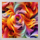 Vibrant and swirling shapes create a dynamic composition filled with various colors, including yellows, oranges, and purples. The intricate layering gives a sense of depth and movement, drawing the viewer into a mesmerizing whirl of hues.