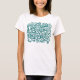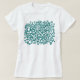 A T-shirt with an quirky hand drawn abstract surreal design, a network of shapes link together with wire like shapes which looks both natural and machine like.