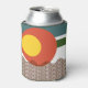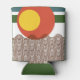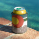 This can cooler has a mid-century modern design of horizontal wavy lines with two circles and two horizontal broad stripes. Want different colours? Message me.