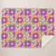 Vivid composition featuring a symmetrical arrangement of purple, yellow, orange, and blue geometric shapes. Expresses modern design elements and conveys a sense of balance and creativity with its dynamic pattern.
