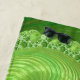 This beach towel features a symmetrical spiral fractal pattern in green shades.