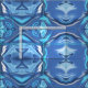 Geometric pattern with an abstract wavy design in blue tones with a molten metal effect inspired by Portuguese tiles.