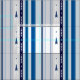 White design with vertical lines in blue tones and abstract brocade.