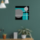 Teal rectangles, grey circles, white lines, black background. #abstract